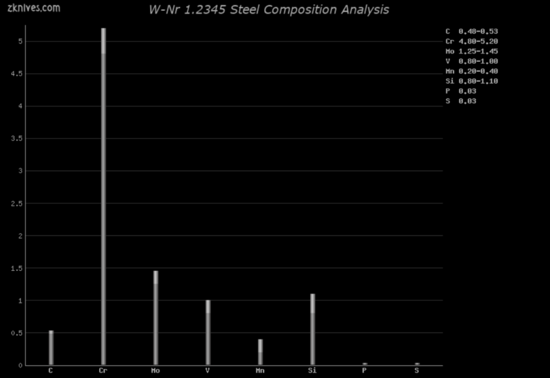 碳(C):0.48%-0.53% 铬(Cr):4.80%-5.20% 钼(Mo):1.25%-1.45% 钒(V):0.80%-1.00% 锰(Mn):0.20%-0.40% 硅(Si):0.80%-1.10% 磷(P):0.03% 硫(S):0.03%