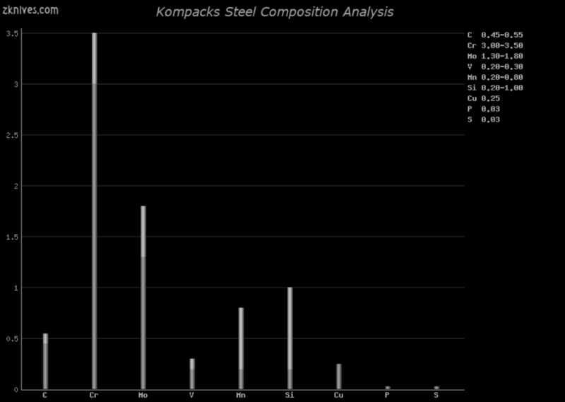 Kompacks(?)- 高度抗震的工具钢。Busse SR-77 就是基于这种钢材。Crucible 生产自己的这种钢的清洁版本,称为S7 XL 钢或 S7 Premium。