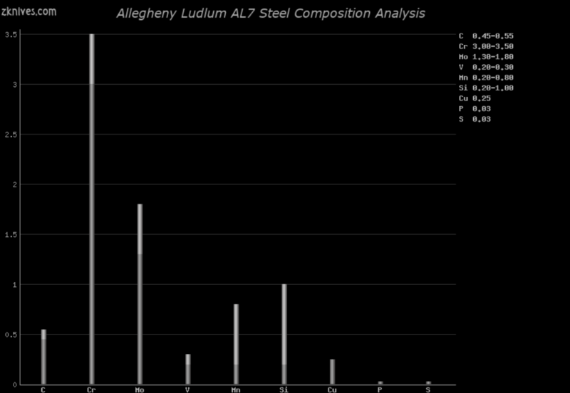 AL7(Allegheny Ludlum) - 高度抗震的工具钢。Busse SR-77 就是基于这种钢材。Crucible 生产自己的这种钢的清洁版本,称为S7 XL 钢或 S7 Premium。