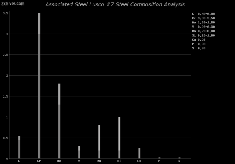 Lusco #7(Associated Steel) - 高度抗震的工具钢。Busse SR-77 就是基于这种钢材。Crucible 生产自己的这种钢的纯净版本,称为 S7 XL 钢或 S7 Premium。