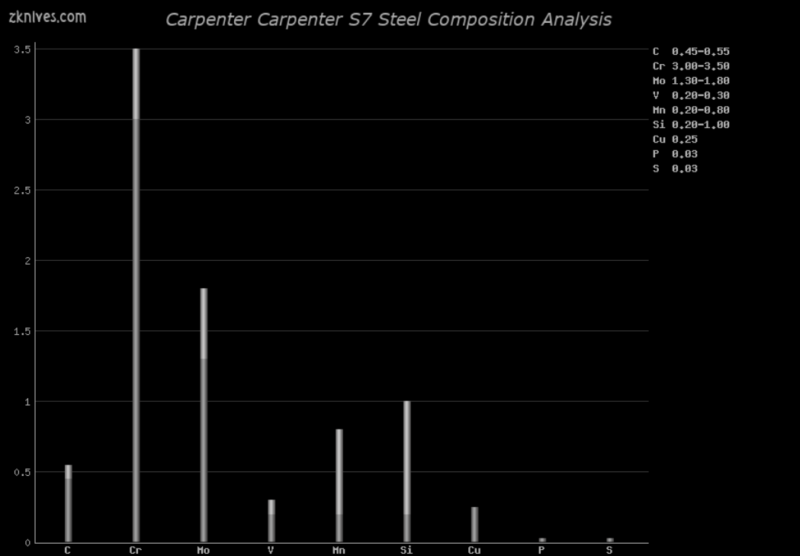 Carpenter S7(Carpenter) - 高度抗震的工具钢。Busse SR-77 就是基于这种钢材。Crucible 生产自己的这种钢的纯净版本,称为 S7 XL 钢或 S7 Premium。