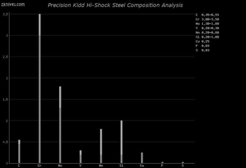 Hi-Shock(Precision Kidd) - 高度抗震工具钢。Busse SR-77 就是基于这种钢材。Crucible 生产自己的这种钢的清洁版本,称为S7 XL 钢或 S7 Premium。