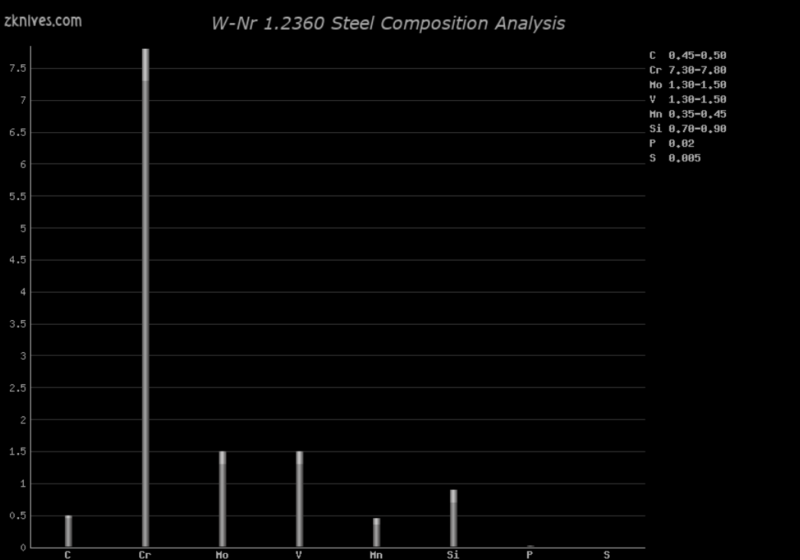1.2360(W-Nr) - 削片钢,类似于 AISI A8 钢,但钒含量更高。