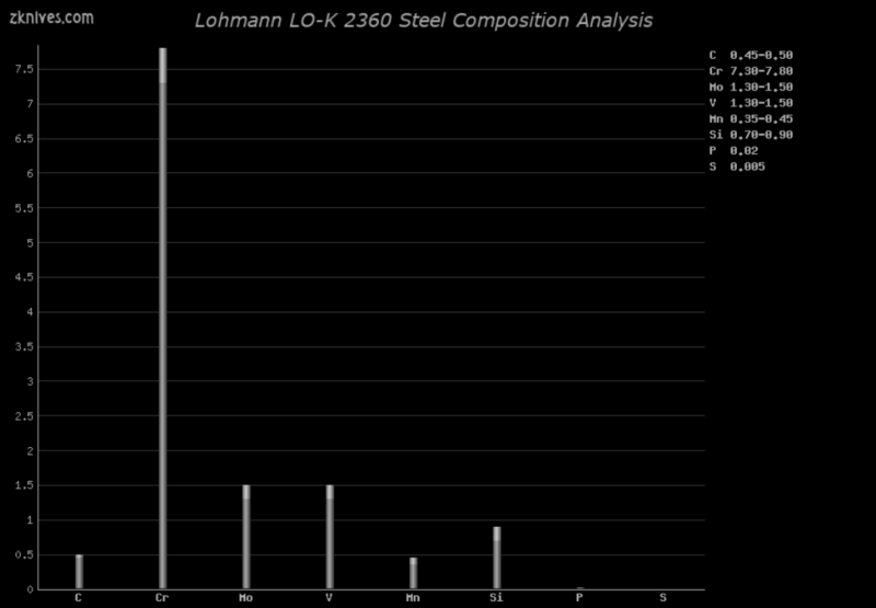 LO-K 2360(Lohmann) - 削片钢,类似于 AISI A8 钢,但钒含量更高。