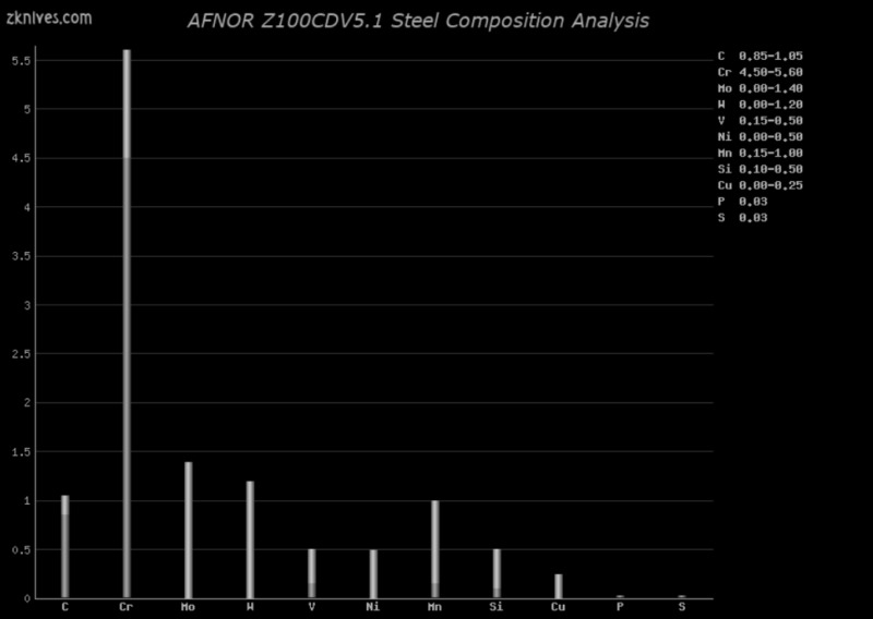 Z100CDV5.1钢材的金属元素含量如下: