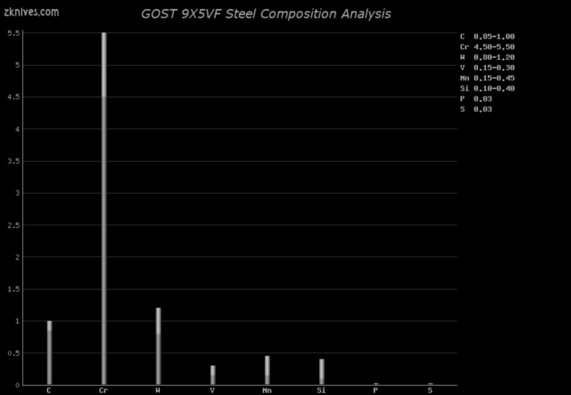 9X5VF(GOST) - 来自俄罗斯的 AISI A2 工具钢的另一种变体。有趣的部分是添加了 0.8-1.2% 的钨 (W)。如果以摩尔质量来看,它是相当微量的,但显然它的存在是有原因的。