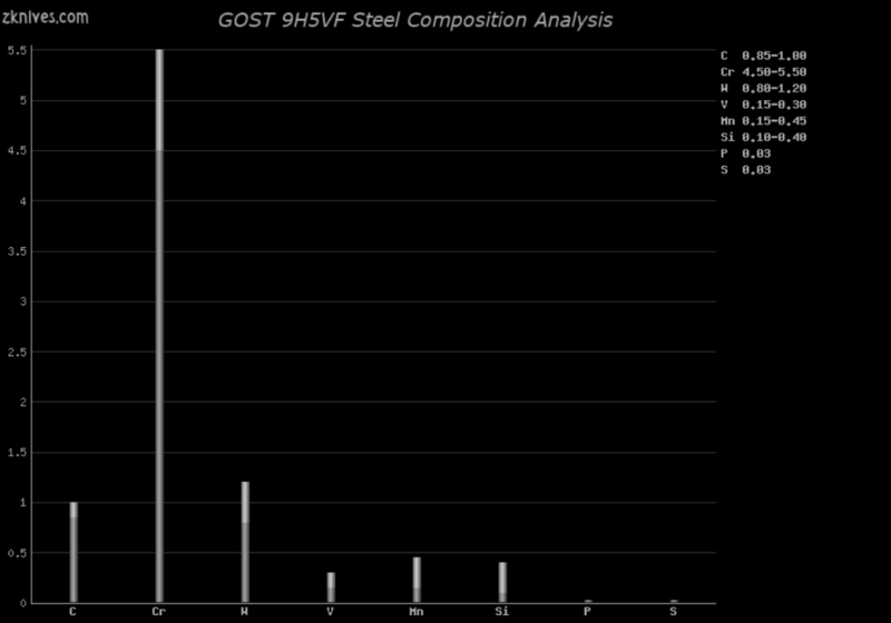 9H5VF(GOST) - 来自俄罗斯的 AISI A2 工具钢的另一种变体。有趣的部分是添加了 0.8-1.2% 的钨 (W)。如果以摩尔质量来看,它是相当微量的,但显然它的存在是有原因的。