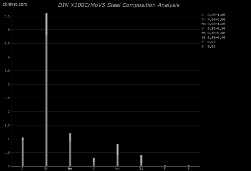 X100CrMoV5(DIN) - 刀具钢常见问题解答 - 一种出色的空气硬化工具钢,它比 AISI D2 和 AISI M2 更坚韧,耐磨性更低。作为空气硬化钢,不要指望它会经过差别回火。它良好的韧性使其成为战斗刀的常见选择。