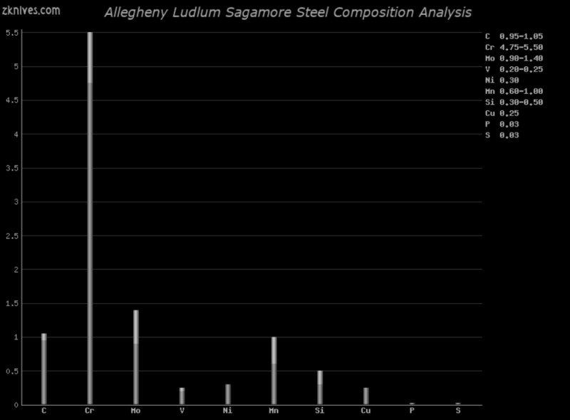 Sagamore(Allegheny Ludlum) - 刀具钢常见问题解答 - 一种出色的空气硬化工具钢,它比AISI D2 和 AISI M2 更坚韧,耐磨性较低。作为空气硬化钢,不要指望它会经过差别回火。它良好的韧性使其成为战斗刀的常见选择。