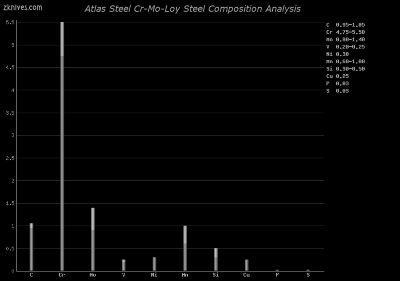 Cr-Mo-Loy(Atlas Steel) - 刀具钢常见问题解答 - 一种出色的空气硬化工具钢,比 AISI D2 和 AISI M2 更坚韧,耐磨性更低。作为空气硬化钢,不要指望它会经过差别回火。它良好的韧性使其成为战斗刀的常见选择。