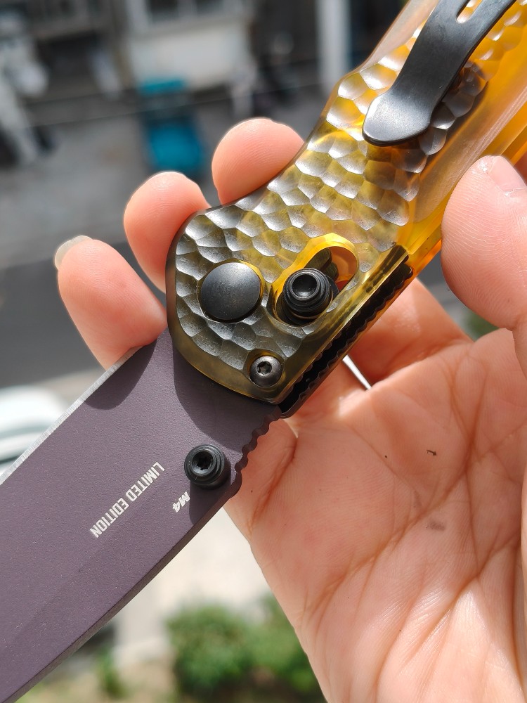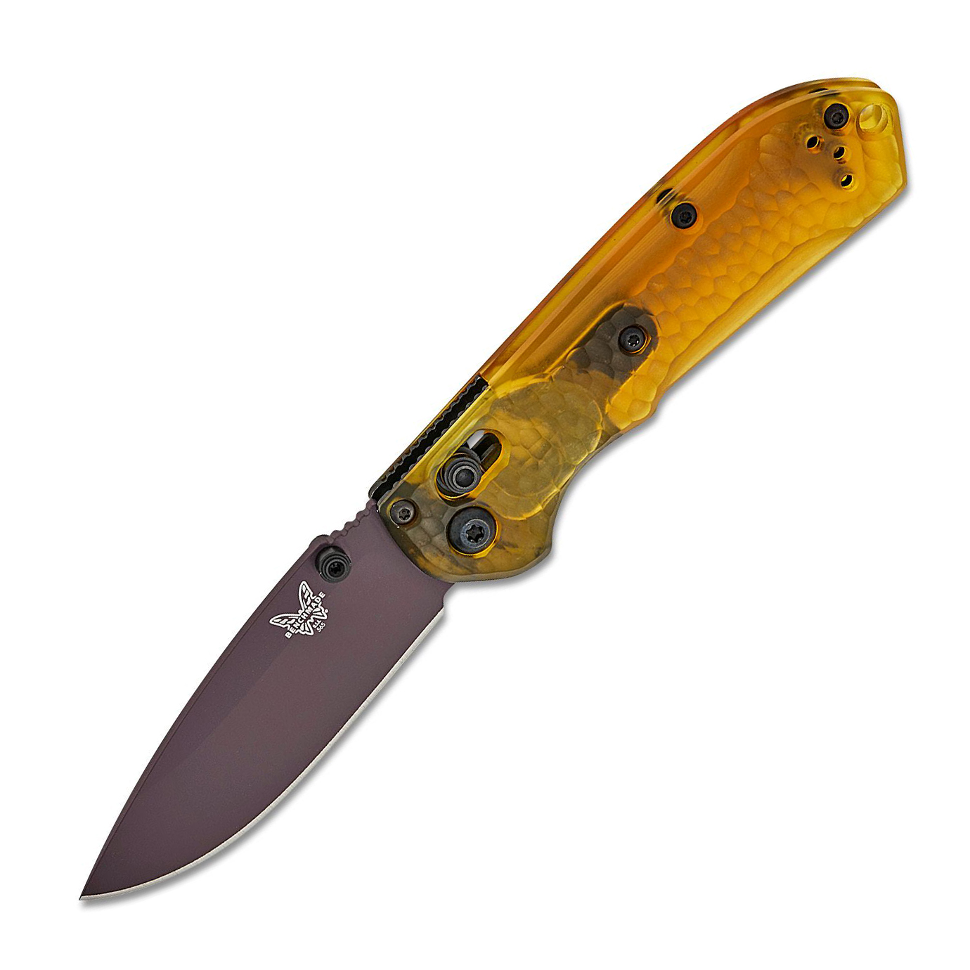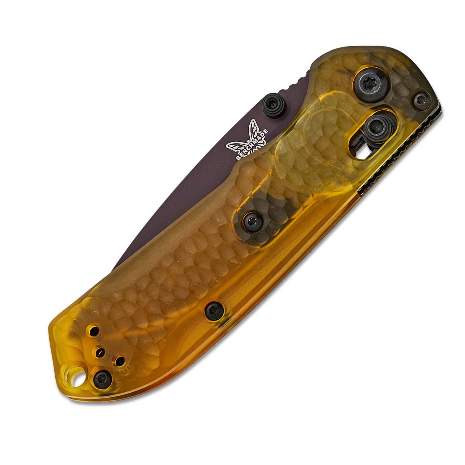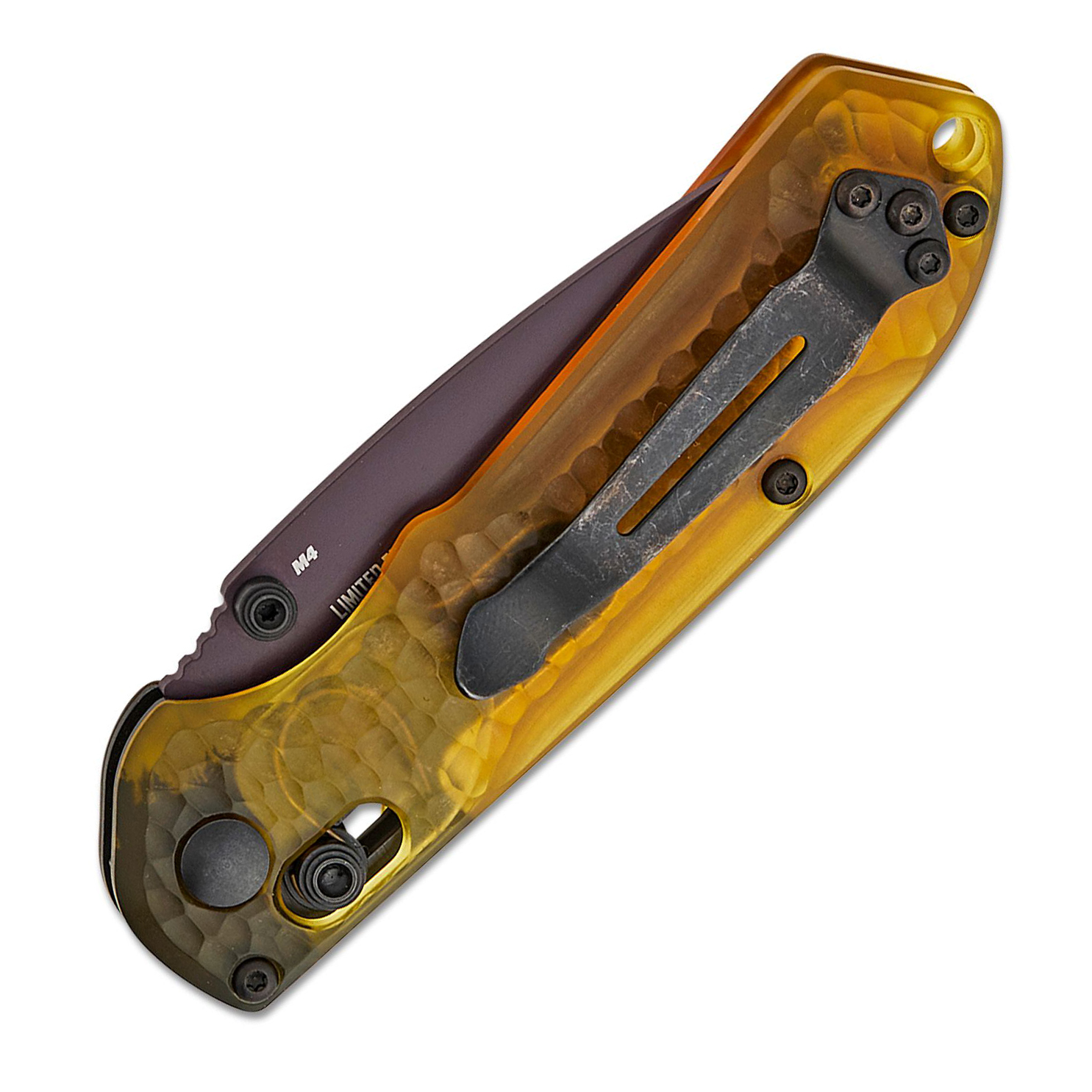 仔细看看 Benchmade 2025 SHOT Show 特别版 565PL-2501 Mini Freek 的外壳。这款坚固的 EDC 受到紫水晶和黄玉宝石搭配的启发,采用水滴形 CPM-M4 刀片,采用定制的紫水晶 Cerakote 涂层和透明琥珀色 ULTEM 手柄鳞片,这是一种具有惊人强度和刚度的优质高性能聚合物。让光线透过粗糙的成品手柄,照亮这款大胆、美丽、独一无二的 Benchmade 折刀,适合硬核 EDC 爱好者和刀具收藏家。限量生产,供 2025 SHOT Show 使用。