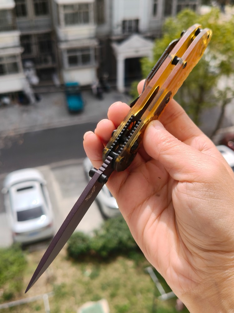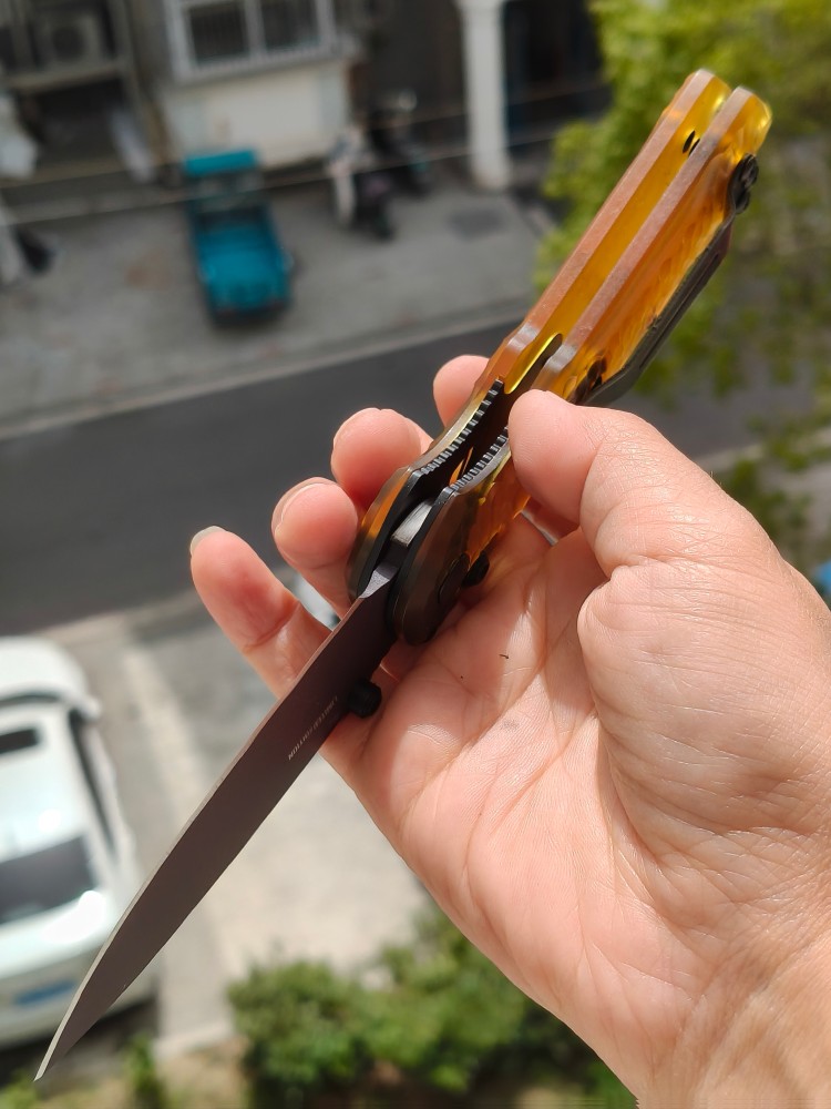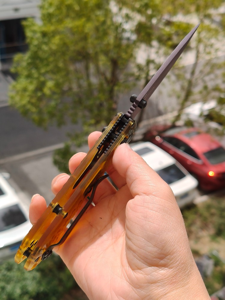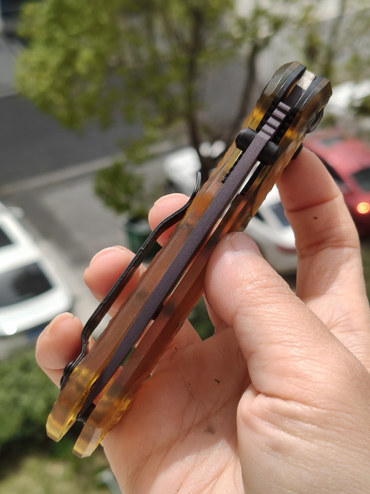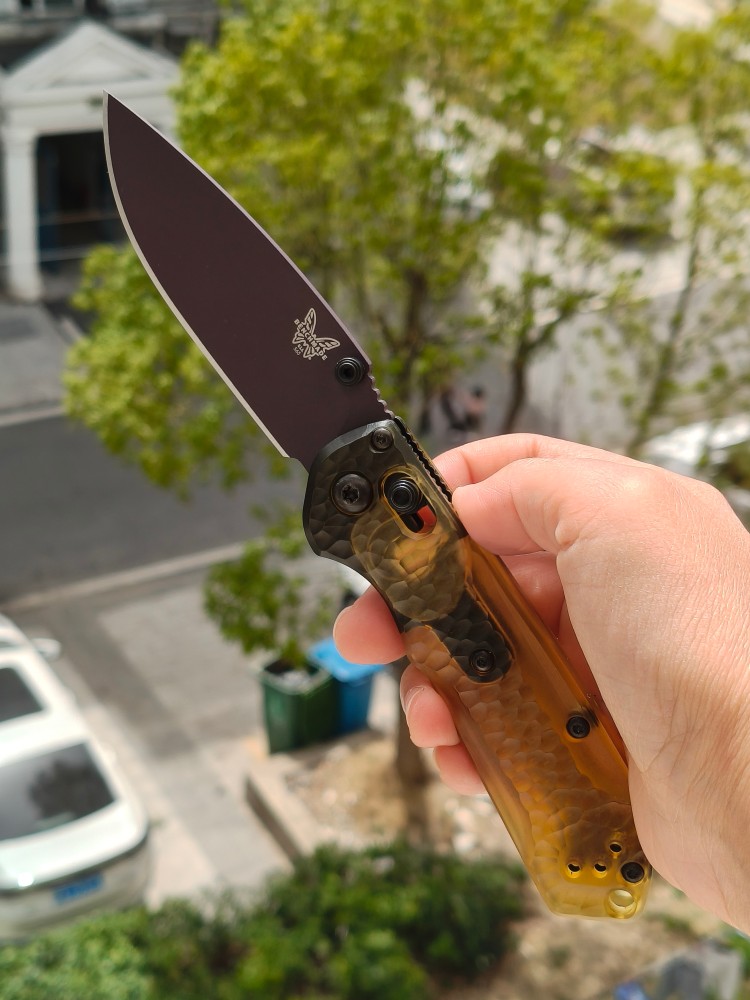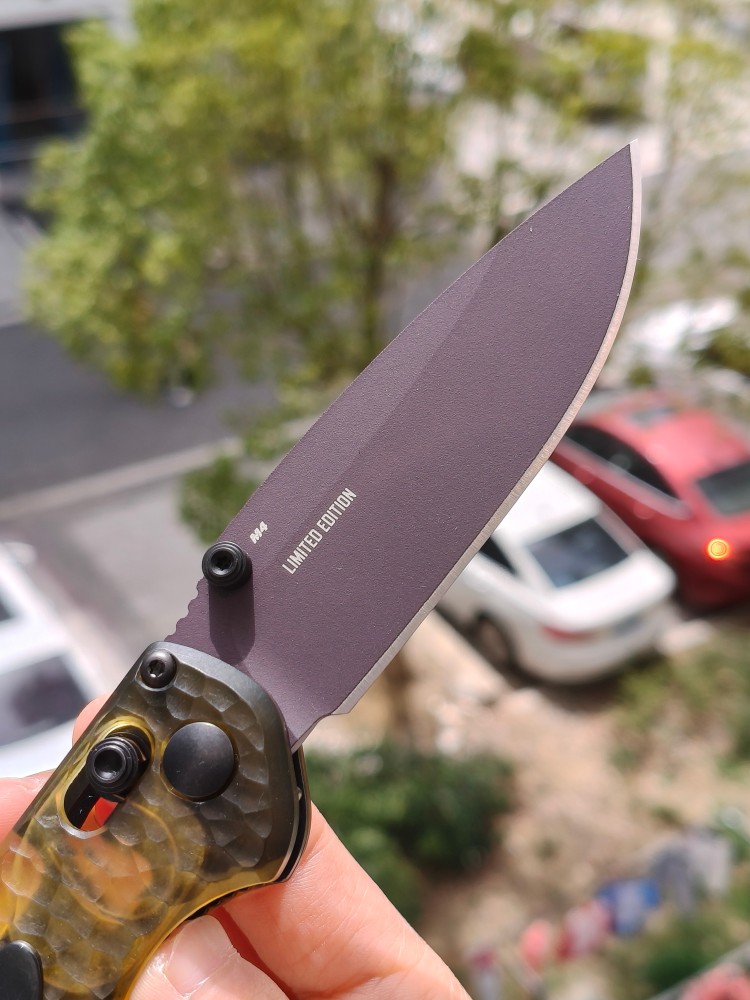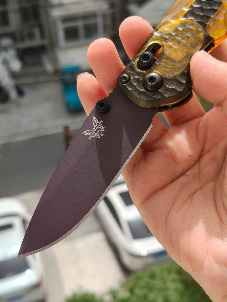AXIS 是Benchmade 的专利产品,自推出以来就备受瞩目,并赢得了众多粉丝的青睐。AXIS 的设计 100% 左右手通用,其功能来自一根小型硬化钢条,该钢条在两个钢衬里上加工的槽中前后移动。该钢条延伸到刀的两侧,横跨衬里,并位于刀片后部。打开刀片时,它会与刀片的倾斜柄部接合。两个欧米茄式弹簧(每个衬里上一个)使锁定杆具有与刀柄接合的惯性。因此,柄部牢固地楔入一个相当大的止动销和 AXIS 钢条本身之间。