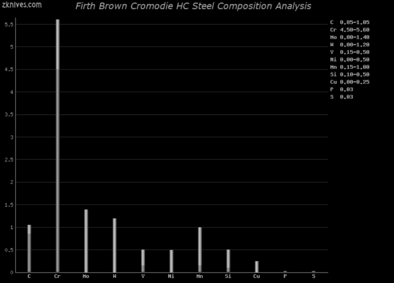 Cromodie HC(Firth Brown) - 刀具钢常见问题 - 一种出色的空气硬化工具钢,它比 AISI D2 和 AISI M2 更坚韧,耐磨性较低。作为空气硬化钢,不要指望它会经过差别回火。它良好的韧性使其成为战斗刀的常见选择。