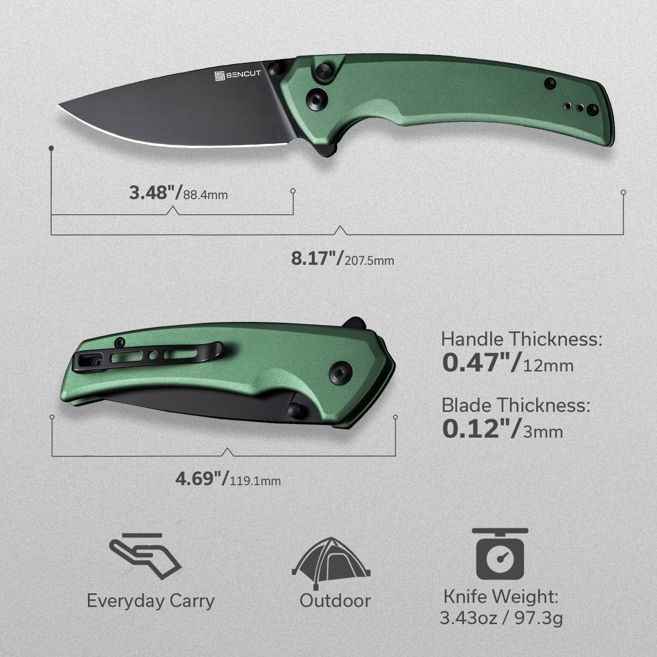 刀刃长度:3.48英寸 / 88.4毫米