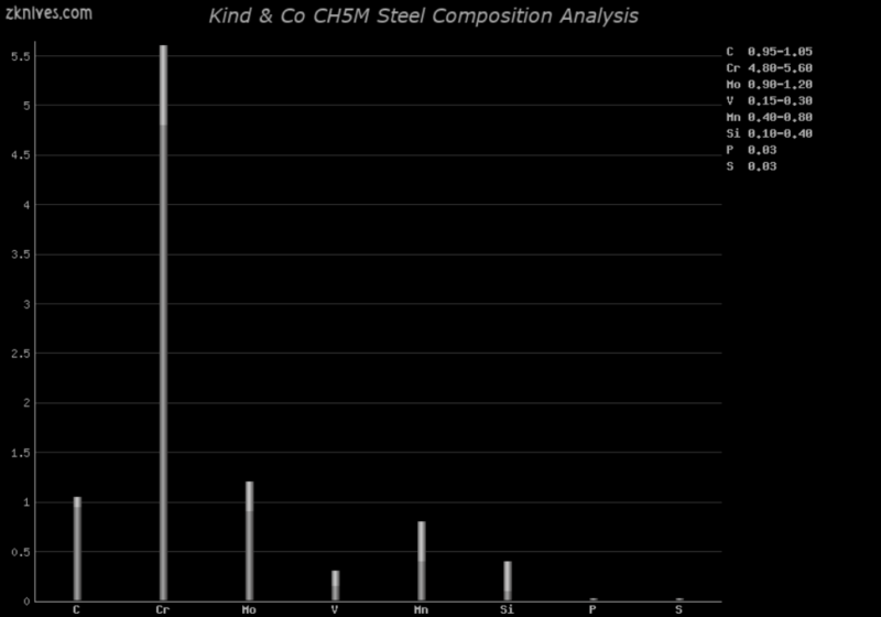 CH5M(Kind & Co) - 刀具钢常见问题解答 - 一种优秀的空气硬化工具钢,它比AISI D2和AISI M2更坚韧,耐磨性较低。作为空气硬化钢,不要指望它会经过差别回火。它良好的韧性使其成为战斗刀的常见选择。