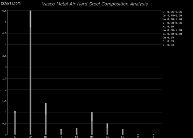 Air Hard(Vasco Metal) - 刀具钢常见问题 - 一种出色的空气硬化工具钢,比 AISI D2 和 AISI M2 更坚韧,耐磨性更低。作为空气硬化钢,不要指望它会经过差别回火。它良好的韧性使其成为战斗刀的常见选择。