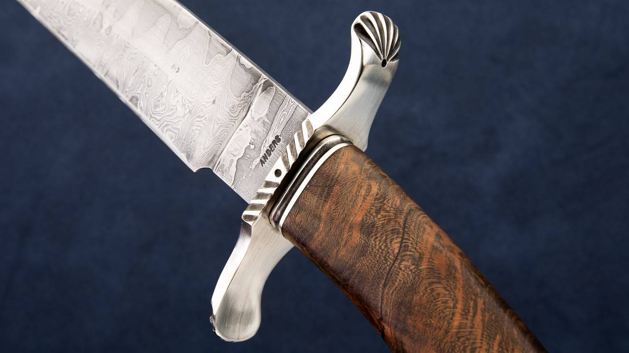 ABS MS大卫.安德斯手工打造,孤品唯一。大卫1989年开始做刀,在美国阿肯色ABS学校学习锻造,并在92年取得JS称号,94年取得MS称号。大卫擅长制作美式传统直刀,最擅长制作博伊刀,曾在北美展会获得过最佳博伊、最佳艺术刀、最佳猎刀等大奖。