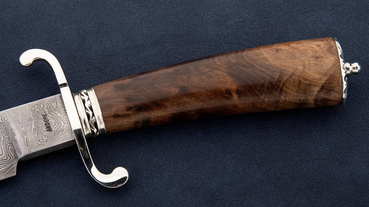 ABS MS大卫.安德斯手工打造,孤品唯一。大卫1989年开始做刀,在美国阿肯色ABS学校学习锻造,并在92年取得JS称号,94年取得MS称号。大卫擅长制作美式传统直刀,最擅长制作博伊刀,曾在北美展会获得过最佳博伊、最佳艺术刀、最佳猎刀等大奖。