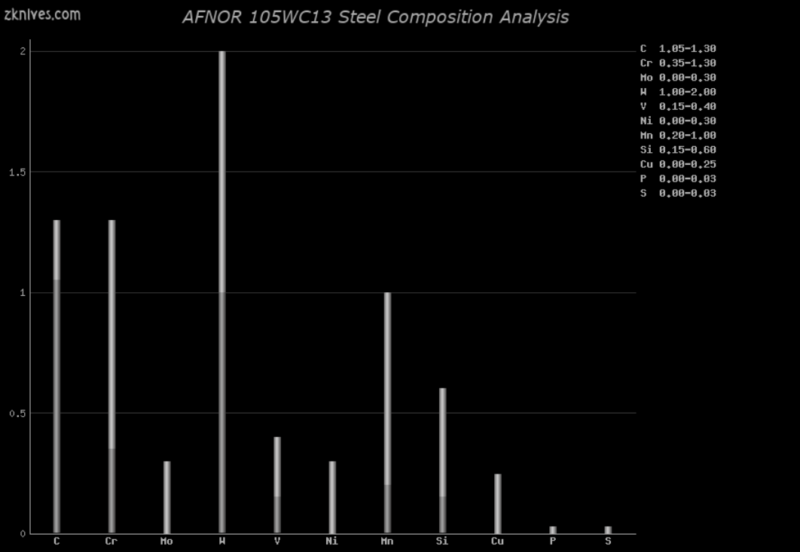 碳(C):1.05%-1.30% 铬(Cr):0.35%-1.30% 钼(Mo):0.00%-0.30% 钨(W):1.00%-2.00% 钒(V):0.15%-0.40% 镍(Ni):0.00%-0.30% 锰(Mn):0.20%-1.00% 硅(Si):0.15%-0.60% 铜(Cu):0.00%-0.25% 磷(P):0.00%-0.03% 硫(S):0.00%-0.03%