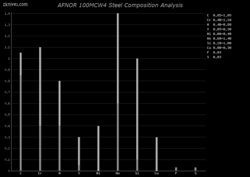 碳(C):0.85%-1.05% 铬(Cr):0.40%-1.10% 钨(W):0.40%-0.80% 钒(V):0.05%-0.30% 镍(Ni):0.00%-0.40% 锰(Mn):0.60%-1.40% 硅(Si):0.10%-1.00% 铜(Cu):0.00%-0.30% 磷(P):0.03% 硫(S):0.03%