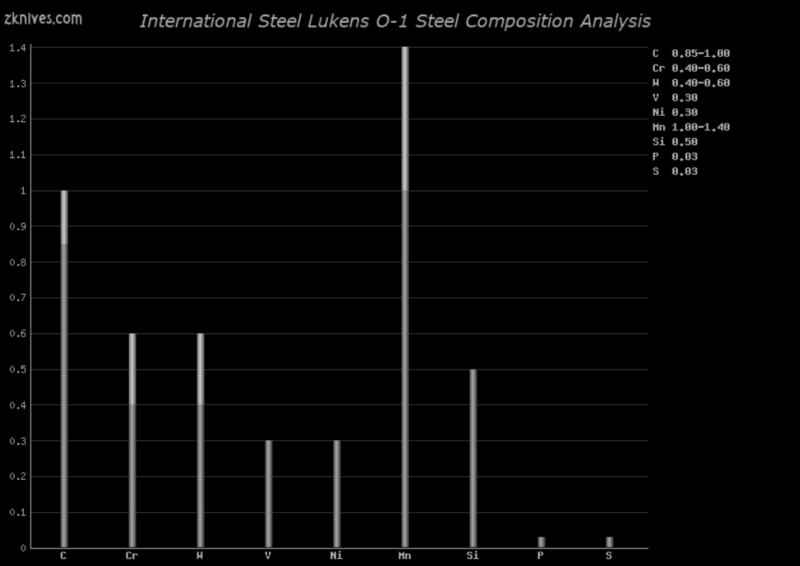 Lukens O-1(International Steel) - 流行的锻造钢。被许多定制制造商和大众制造商使用,包括 Randall。良好的边缘稳定性和耐磨性,不如 AISI A2 或其同等产品坚韧,但在该部门仍然相当好。可以达到 65HRC,并且作为轻型/中型铣刀与精加工边缘配合得很好。Randal 在 56HRC 左右使用它,其他制造商在 56-58HRC 左右使用它来制造较大的刀具,以及高于该比例的中/小型刀具。如果您正在寻找一把硬用刀,坩埚 CPM 3V、AISI L6 或 AISI A2 及其同类产品都是更好的选择。对于小刀,它在高硬度下绝对表现更好。