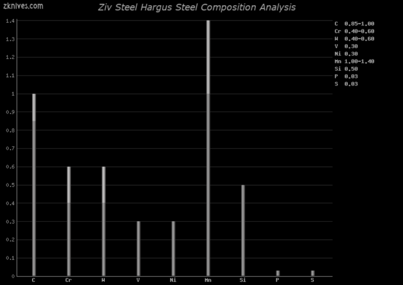 Hargus(Ziv Steel) - 流行的锻造钢。被许多定制制造商和大众制造商使用,包括 Randall。良好的边缘稳定性和耐磨性,不如 AISI A2 或其同等产品坚韧,但在该部门仍然相当好。可以达到 65HRC,并且作为轻型/中型铣刀与精加工边缘配合得很好。Randal 在 56HRC 左右使用它,其他制造商在 56-58HRC 左右使用它来制造较大的刀具,以及高于该比例的中/小型刀具。如果您正在寻找一把硬用刀,坩埚 CPM 3V、AISI L6 或 AISI A2 及其同类产品都是更好的选择。对于小刀,它在高硬度下绝对表现更好。