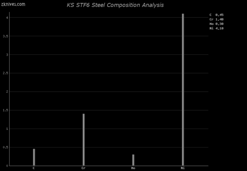 STF6(KS) - 这是标准 41/4% 镍空气/油硬化钢的高碳版本。对于刀子来说,并没有特别令人兴奋的特性。