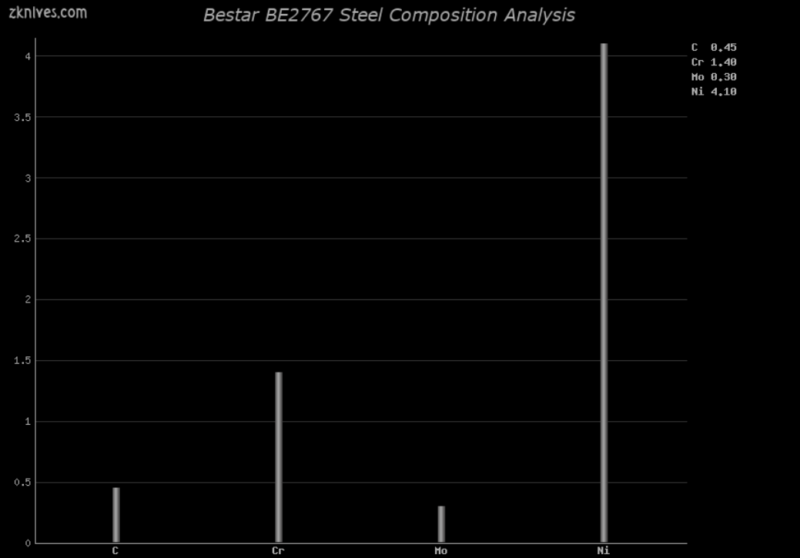 BE2767(Bestar) - 这是标准 41/4% 镍空气/油硬化钢的高碳版本。对于刀子来说,并没有特别令人兴奋的特性。