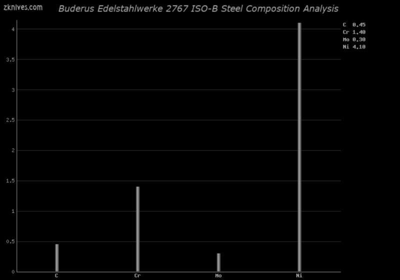 2767 ISO-B(Buderus Edelstahlwerke) - 这是标准 41/4% 镍空气/油硬化钢的高碳版本。对于刀子来说,并没有特别令人兴奋的特性。