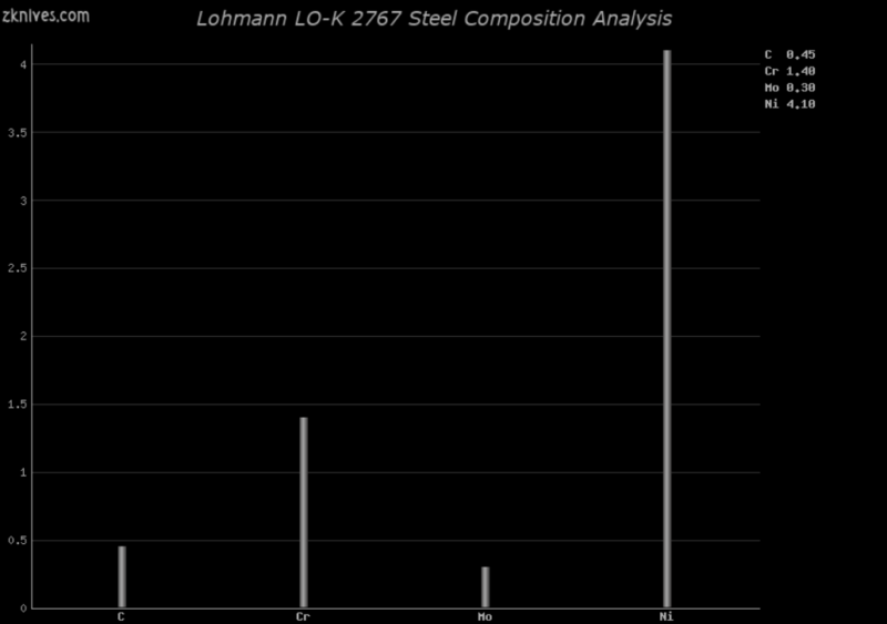 LO-K 2767(Lohmann) - 这是标准 41/4% 镍空气/油硬化钢的高碳版本。对于刀子来说,并没有特别令人兴奋的特性。