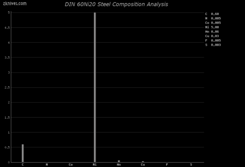 60Ni20(DIN) - 碳/镍钢,用于大马士革刀。非常干净的合金,使用 4 型 Armco 铁制成。