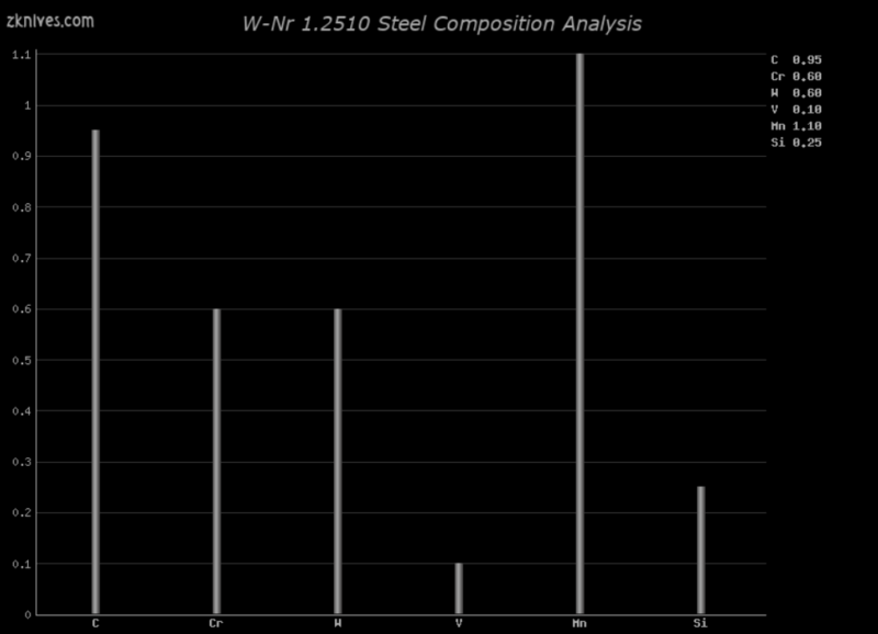 1.2510(W-Nr) - 流行的锻钢。被许多定制制造商和大众制造商使用,包括 Randall。良好的边缘稳定性和耐磨性,不如 A2 坚韧。