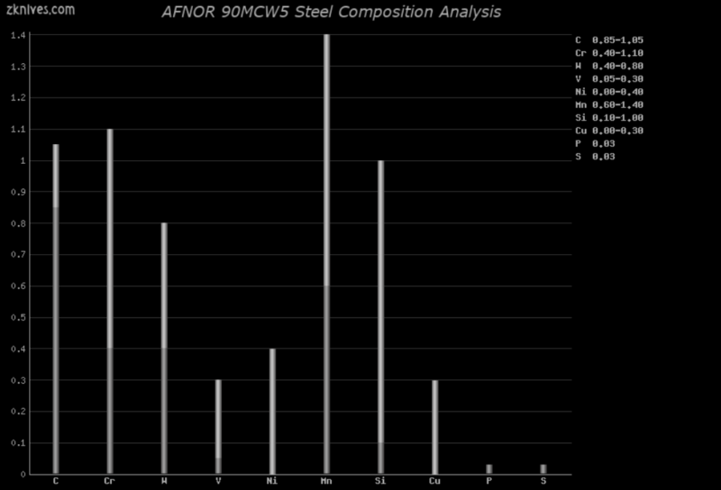 碳(C):0.85%-1.05% 铬(Cr):0.40%-1.10% 钨(W):0.40%-0.80% 钒(V):0.05%-0.30% 镍(Ni):0.00%-0.40% 锰(Mn):0.60%-1.40% 硅(Si):0.10%-1.00% 铜(Cu):0.00%-0.03% 磷(P):0.03% 硫(S):0.03%