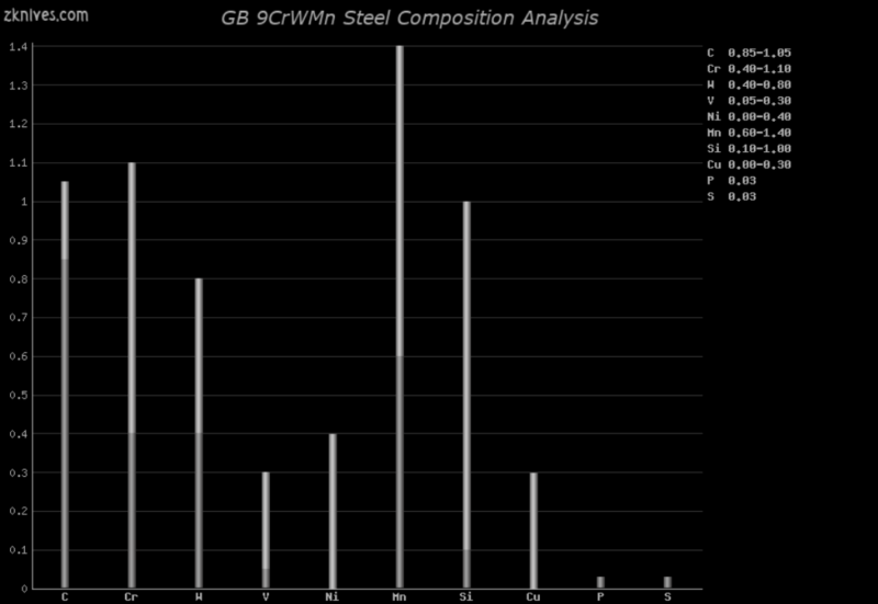 碳(C):0.85%-1.05% 铬(Cr):0.40%-1.10% 钨(W):0.40%-0.80% 钒(V):0.05%-0.30% 镍(Ni):0.00%-0.40% 锰(Mn):0.60%-1.40% 硅(Si):0.10%-1.00% 铜(Cu):0.00%-0.03% 磷(P):0.03% 硫(S):0.03%