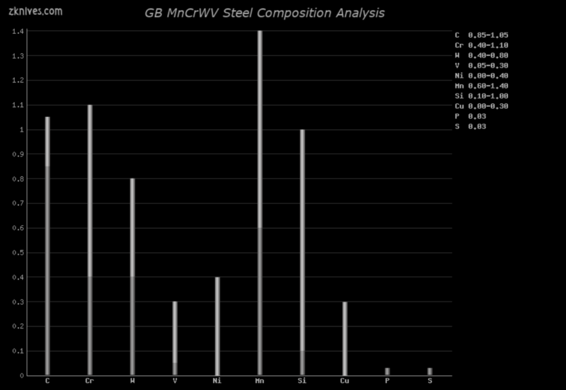 碳(C):0.85%-1.05% 铬(Cr):0.40%-1.10% 钨(W):0.40%-0.80% 钒(V):0.05%-0.30% 镍(Ni):0.00%-0.40% 锰(Mn):0.60%-1.40% 硅(Si):0.10%-1.00% 铜(Cu):0.00%-0.03% 磷(P):0.03% 硫(S):0.03%