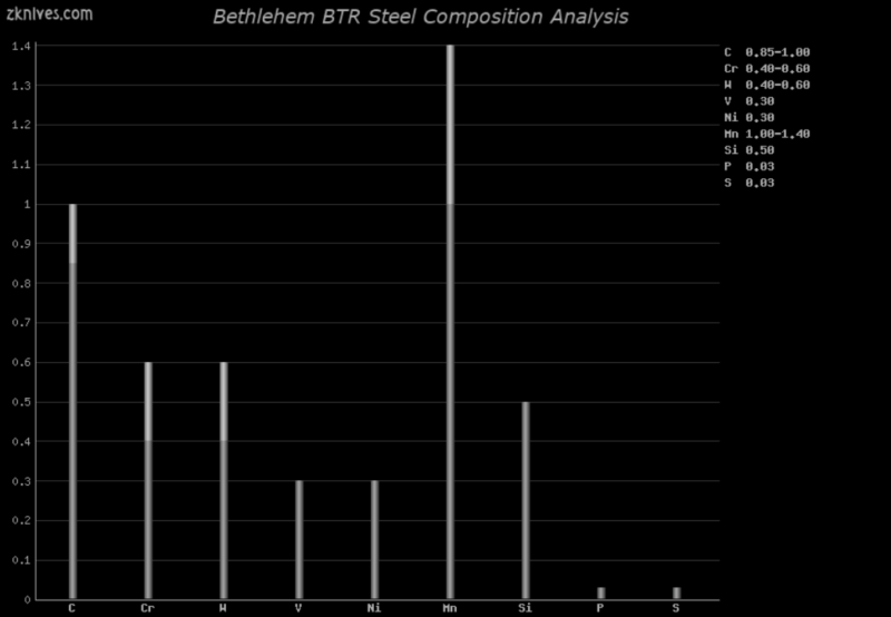 BTR(Bethlehem) - 一种常见的锻造钢材。被许多定制刀具制造商和批量生产商使用,包括Randall。具有良好的刃口稳定性和耐磨性,虽然韧性不如AISI A2或其等效材料,但在这一方面仍然表现不错。可以达到65HRC的硬度,适合作为轻型/中型切割工具的精细刃口。Randall通常将其硬度控制在56HRC左右,而其他制造商在制作较大刀具时通常将其硬度控制在56-58HRC,对于中小型刀具则会更高。如果你需要一把高强度使用的刀具,Crucible CPM 3V、AISI L6或AISI A2及其等效材料会是更好的选择。对于小型刀具,BTR在高硬度下表现更佳。