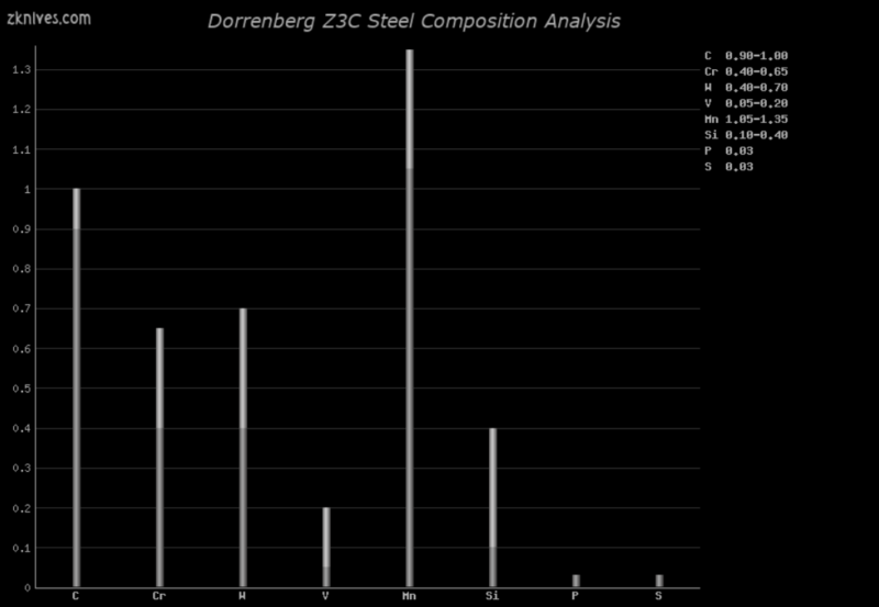 Z3C(Dorrenberg) - 流行的锻钢。被许多定制制造商和大众制造商使用,包括 Randall。良好的边缘稳定性和耐磨性,不如 A2 坚韧。