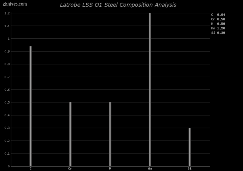 LSS O1(Latrobe) - 一种常见的锻造钢材。被许多定制刀具制造商和批量生产商使用,包括Randall。具有良好的刃口稳定性和耐磨性,虽然韧性不如AISI A2或其等效材料,但在这一方面仍然表现不错。可以达到65HRC的硬度,适合作为轻型/中型切割工具的精细刃口。Randall通常将其硬度控制在56HRC左右,而其他制造商在制作较大刀具时通常将其硬度控制在56-58HRC,对于中小型刀具则会更高。如果你需要一把高强度使用的刀具,Crucible CPM 3V、AISI L6或AISI A2及其等效材料会是更好的选择。对于小型刀具,LSS O1在高硬度下表现更佳。