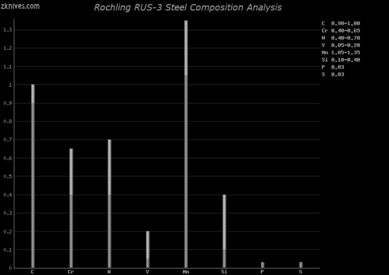 RUS-3(Rochling) - 流行的锻钢。被许多定制制造商和大众制造商使用,包括 Randall。良好的边缘稳定性和耐磨性,不如 A2 坚韧。