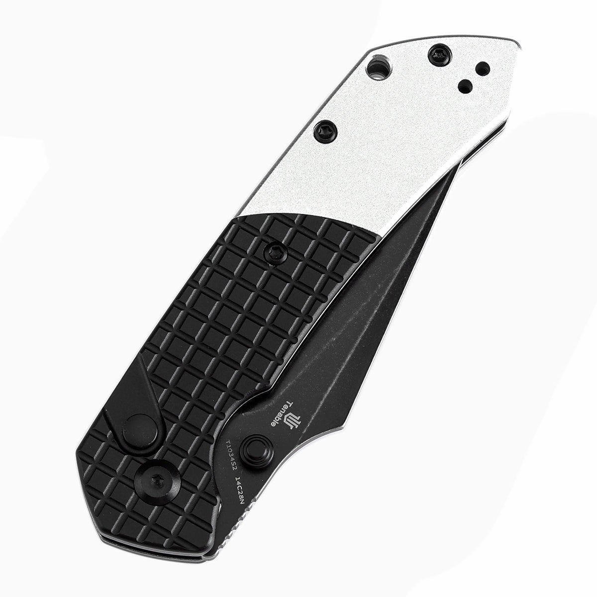 手柄采用带倒角边缘的铝制手柄,提供舒适和安全的抓握。Frag 图案纹理增强了牵引力,提高了抓地力,而不会影响舒适度。这种设计确保刀手感极佳,既稳定又提供流畅、符合人体工程学的体验,适合长时间使用。