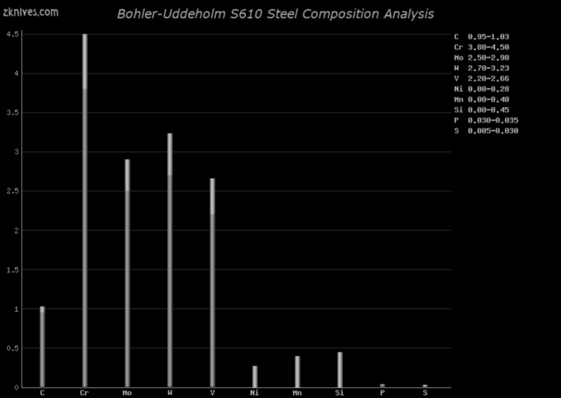 碳(C):0.95%-1.03% 铬(Cr):3.80%-4.50% 钼(Mo):2.50%-2.90% 钨(W):2.70%-3.23% 钒(V):2.20%-2.66% 镍(Ni):0.00%-0.28% 锰(Mn):0.00%-0.40% 硅(Si):0.00%-0.45% 磷(P):0.030%-0.035% 硫(S):0.005%-0.030%