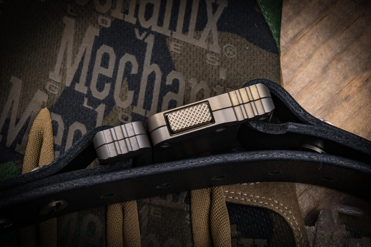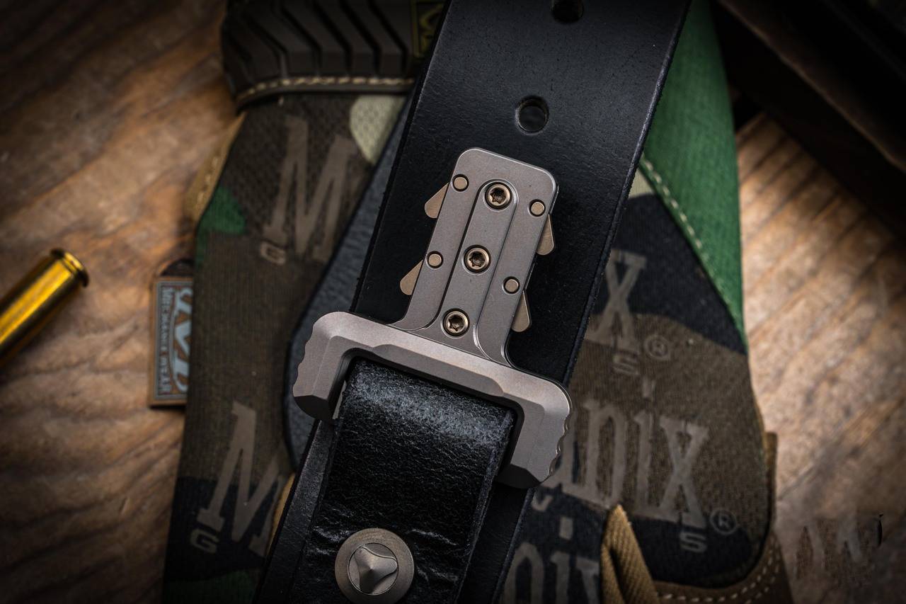 Microtech/Marfione 定制 Apis 是美国制造的高品质定制腰带,专为 MCK 爱好者设计。它由极高品质的水牛皮制成,配有专有的钛合金表扣。这款 Apis 采用深棕色饰面,配有青铜色硬件。皮带上打有腰带长度的孔,所以你可以根据需要选择尽可能小的,但最大长度是38英寸,所以你可以根据自己的喜好进行调整,以确保它适合。钛金属搭扣具有坚如磐石的锁扣,侧面带有用于释放的按钮。这条定制腰带包括 Microtech 非常受欢迎的专有硬件,但除了备用硬件和钉子外,还包括一个驱动程序。