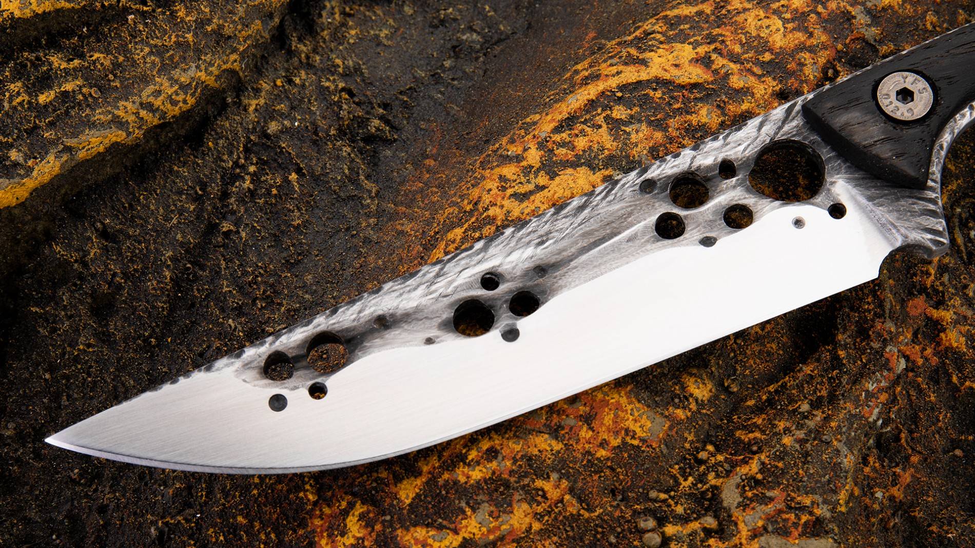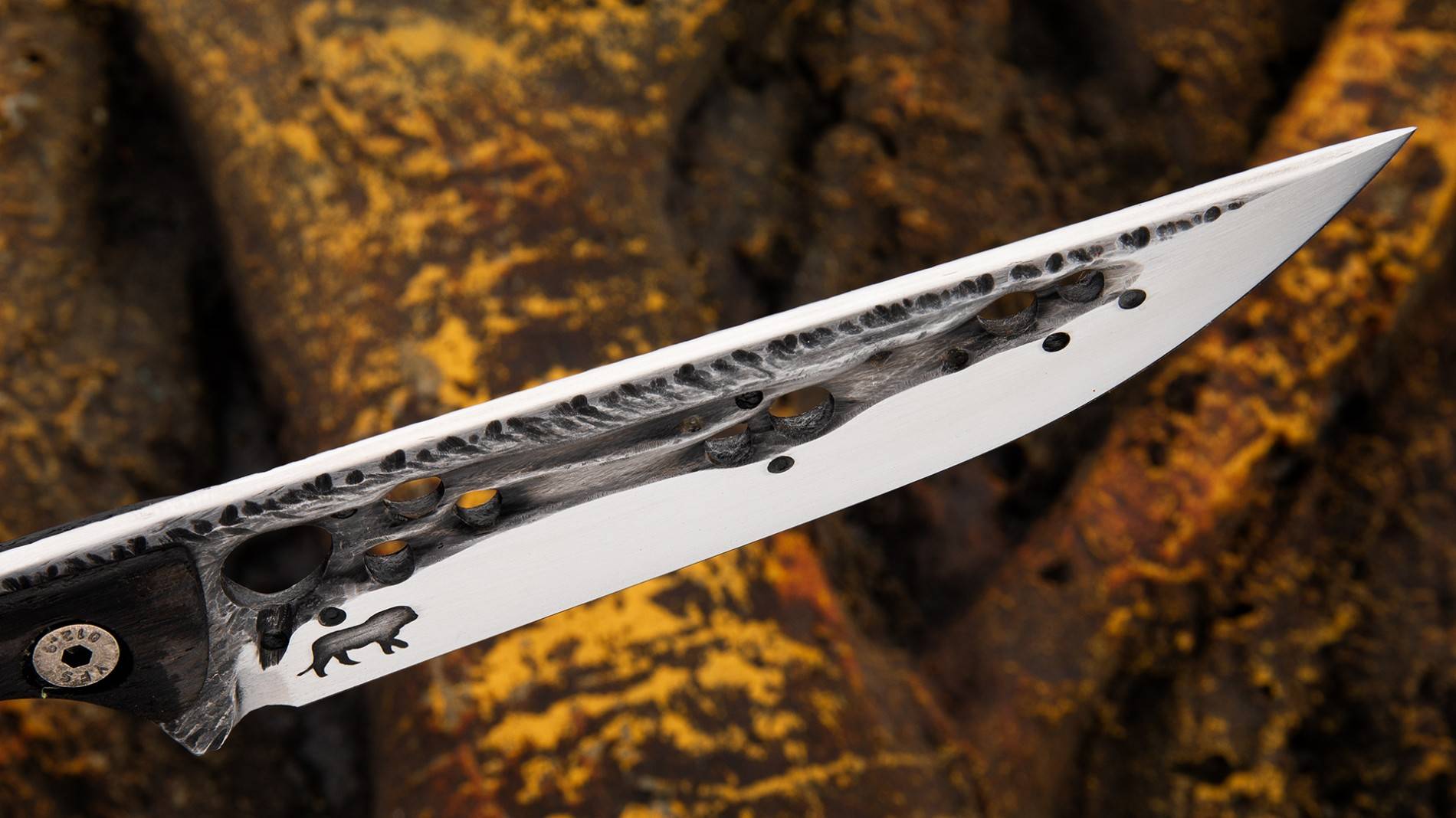 外形独特的战术猎刀,如同被风化侵蚀的山峰洞穴,让人过目难忘。美国名匠查德,基梅尔手工打造,孤品唯一。查德来自得克萨斯州,拥有近二十年的制刀经验,擅长锻造户外实用性直刀,兼具性能,外观和实用性。