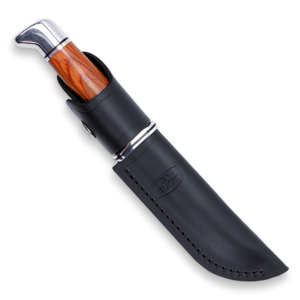 Buck 0105CCS1 Heritage Pathfinder 固定刀片刀是一款多功能工具,专为户外和狩猎任务而设计。它采用 420HC 不锈钢制成的 5 英寸夹点刀片,表面经过缎面处理,具有出色的锋利度、耐用性和耐腐蚀性。手柄采用科可波罗木制成,并配有镍银柄头和护手,将永恒的美感与安全舒适的握感相结合。这把刀既实用又优雅,非常适合精密切割和一般用途。它配有高品质皮革刀鞘,方便安全携带,是户外探险的可靠伴侣。