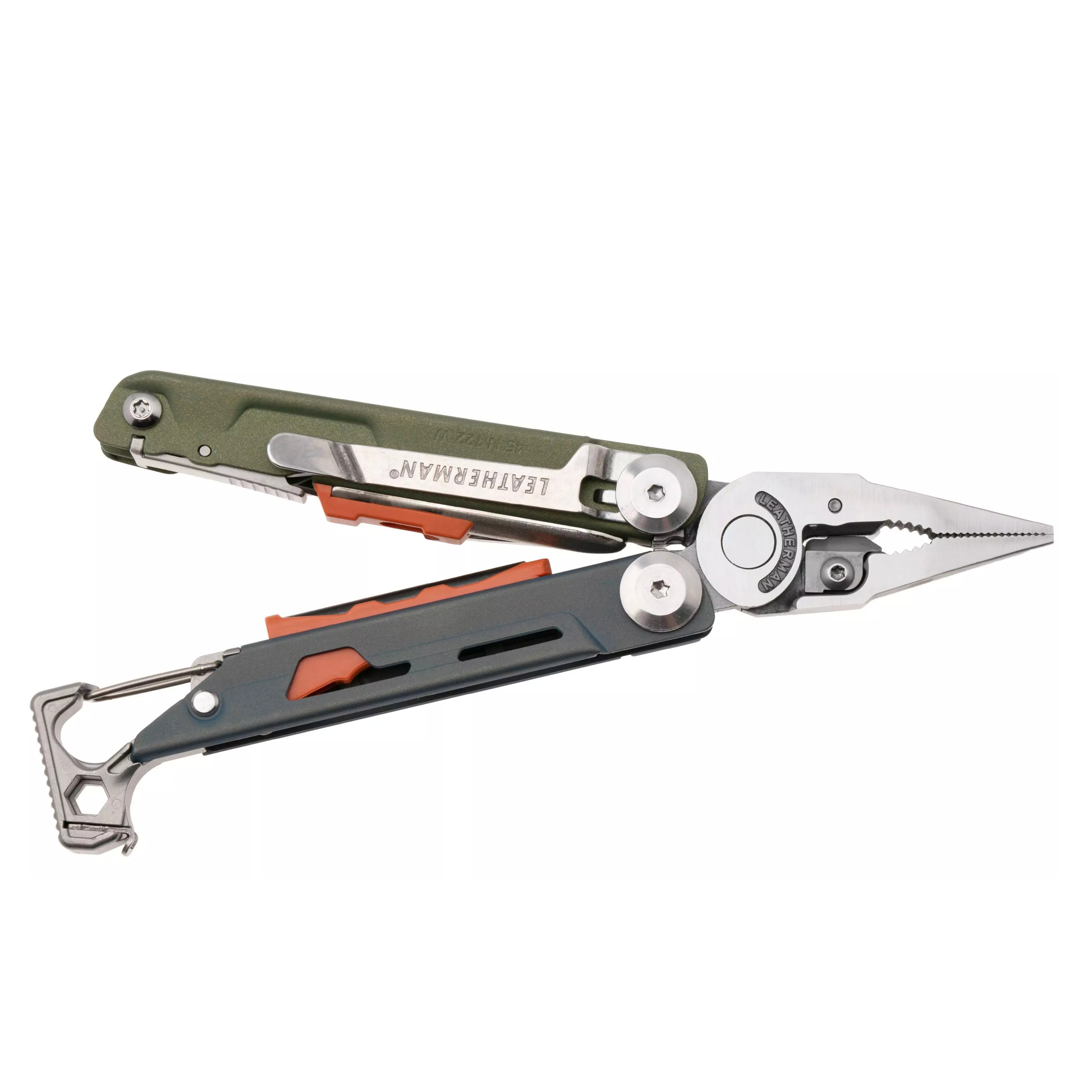 尖嘴钳、标准钳、剥线钳、安全带穿孔锥、开罐器、开瓶器、登山扣(兼做第二个开瓶器)、1/4英寸和3/16英寸扳手