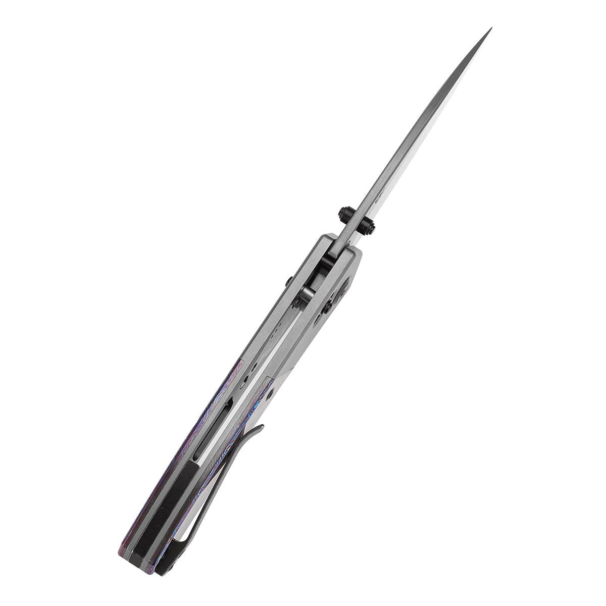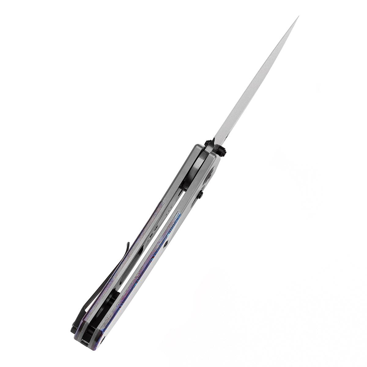 手柄由钛和脂肪碳/碳纤维/Timascus/Micarta 组合制成,兼具强度和视觉吸引力。手柄具有微妙的弧度,自然贴合手部轮廓,倒角边缘可实现光滑舒适的握持。