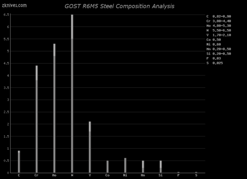 R6M5(GOST) - 相当于俄罗斯的 AISI M2 工具钢。虽然与 M2 不同,其成分中含有 0.50% 的钴。有关更多信息,请参见 M2 钢注释。