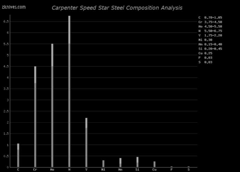 Speed Star(Carpenter) - 高速工具钢,已经存在了一段时间。定制刀具以及高端和限量版生产刀具的热门选择。Gerber 早在 90 年代就开始使用它。作为高速工具钢 M2 即使在非常高的温度下也能保持回火,因此在工业中用于高温切割作业,例如钻头和其他金属切削仪器。这些都不是传统刀具的设计目的, 但就传统刀具而言,与 AISI D2 等流行的刀具钢相比,M2 在相同硬度下确实具有更好的耐磨性和韧性。M2 使刀片钢更好,除非抗污性是一个问题。Benchmade 在多把刀中使用了 M2,包括 AFCK、710 HSS McHenry And Williams、Nimravus HSS、Ares 等。像往常一样,生产刀具的切削刃在 60-62HRC 左右,但这并不是真正的最佳选择,至少如果您的目标是最佳切割效率和边缘保持力,则不会。我使用的 64 HRC M2 刀片与 60HRC 的刀片相比要好得多。我认为在较低硬度下,M2 可用于重型工作的中/大型刀具,但为什么费心呢,这些任务有更好的选择,例如 CPM 3V。对于薄的高性能刀具,高硬度 M2 效果很好。虽然,大约在 2005 年,它被 AISI M4 高速工具钢所取代,这种钢可能更硬一些,但更重要的是在相同硬度下具有更好的韧性,这意味着更好的边缘保持能力。