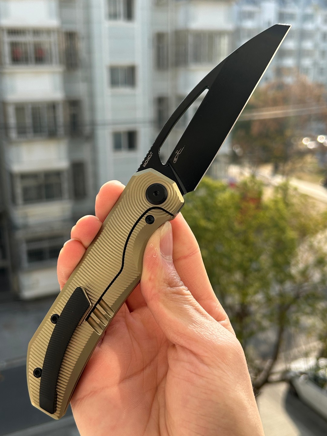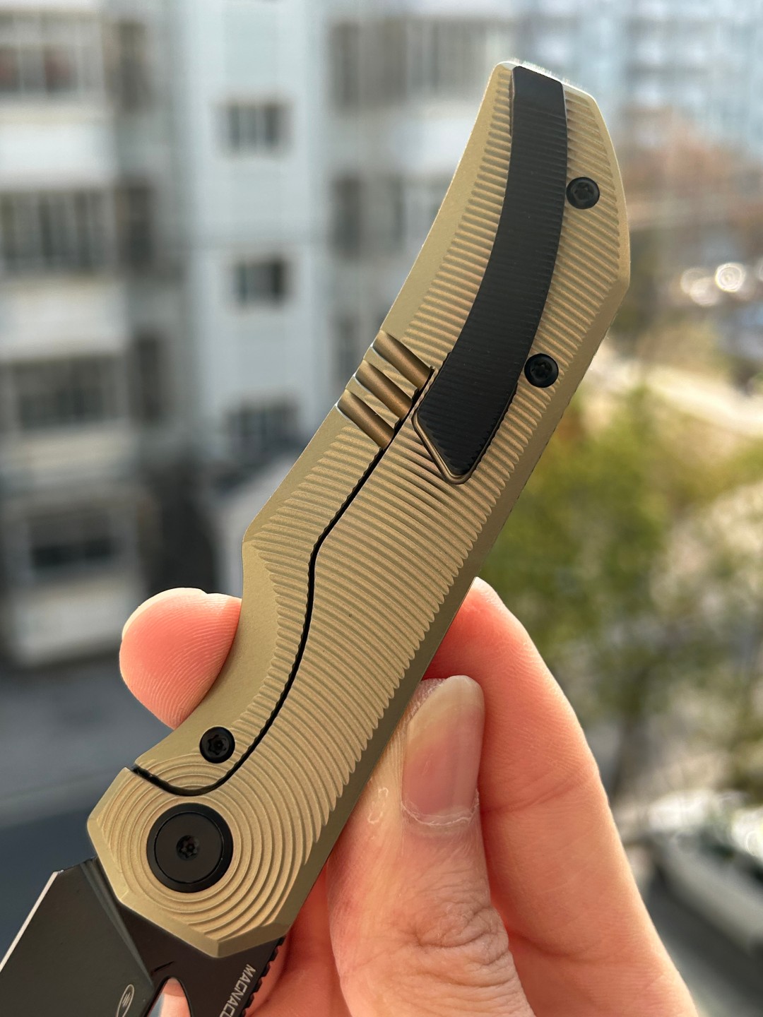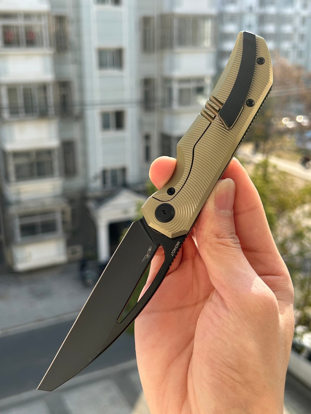 规格 刀片材质:M-CUT 刀片表面处理:黑色 PVD 手柄材质:钛 手柄颜色: 青铜 总长度: 8.307''/211mm 闭合长度: 4.579 英寸/116.3 毫米 刀片长度:3.68 英寸/935 毫米 刀片厚度:0.118 英寸/3.0 毫米...