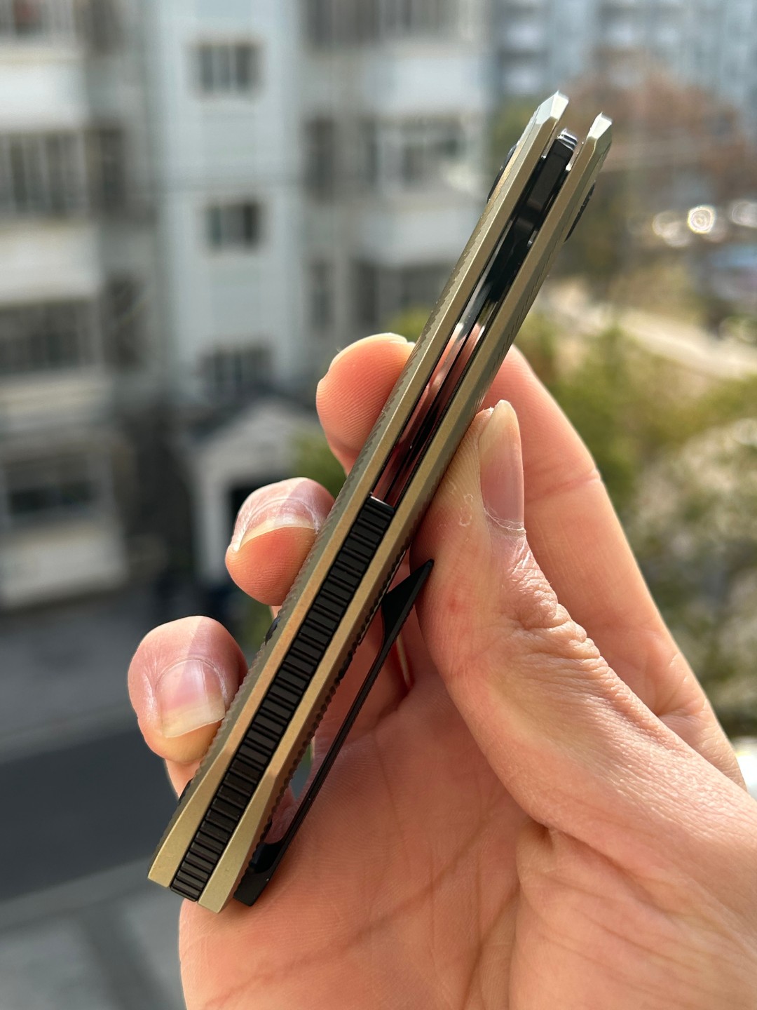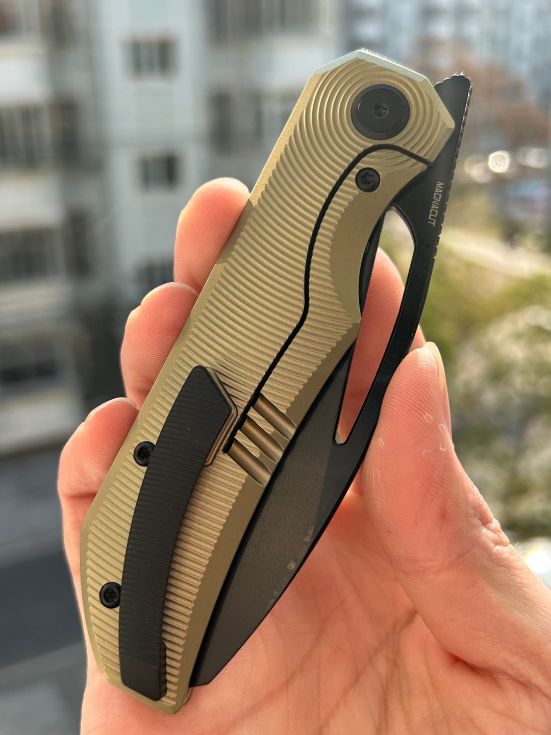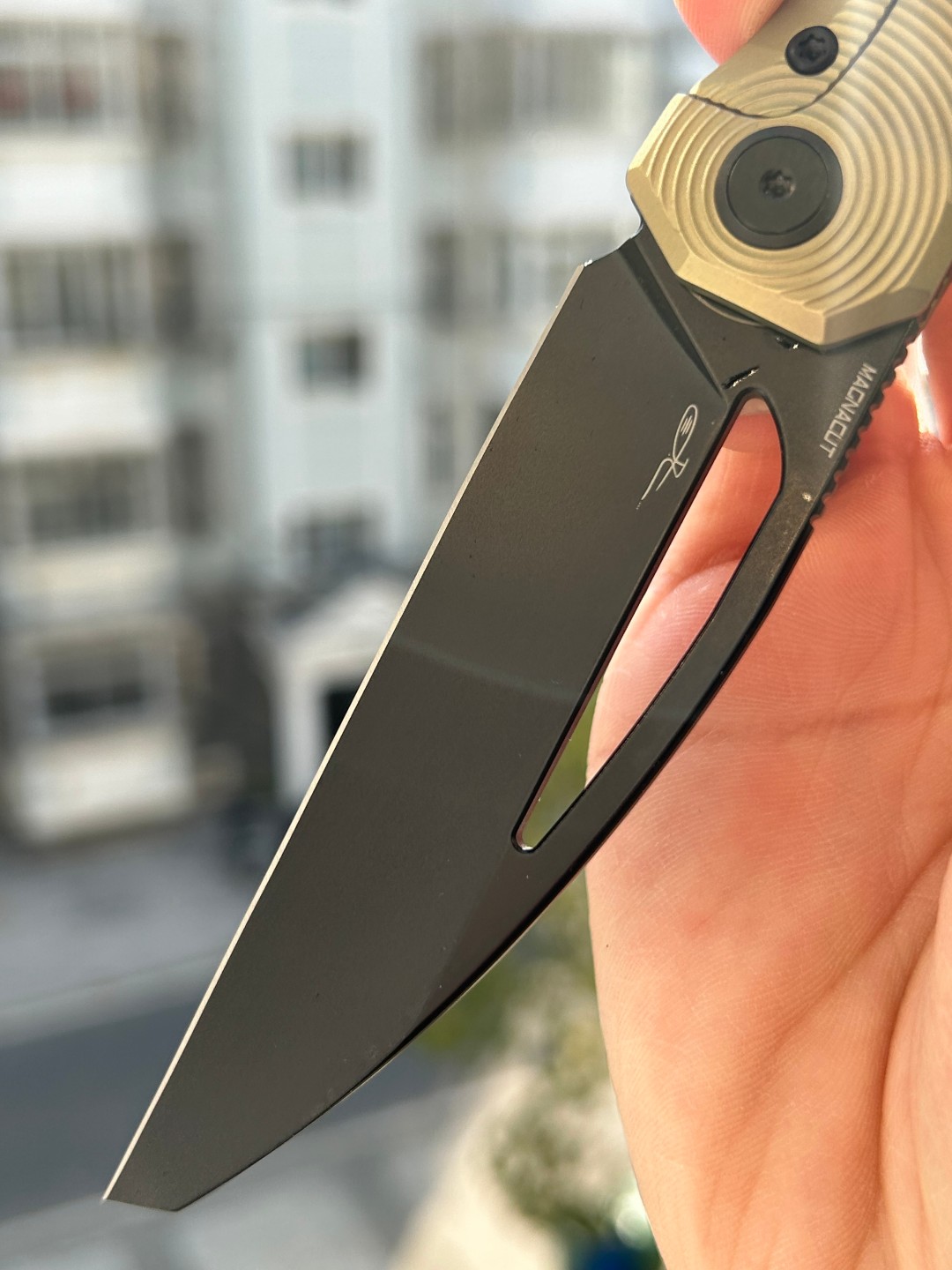 规格 刀片材质:M-CUT 刀片表面处理:黑色 PVD 手柄材质:钛 手柄颜色: 青铜 总长度: 8.307''/211mm 闭合长度: 4.579 英寸/116.3 毫米 刀片长度:3.68 英寸/935 毫米 刀片厚度:0.118 英寸/3.0 毫米...